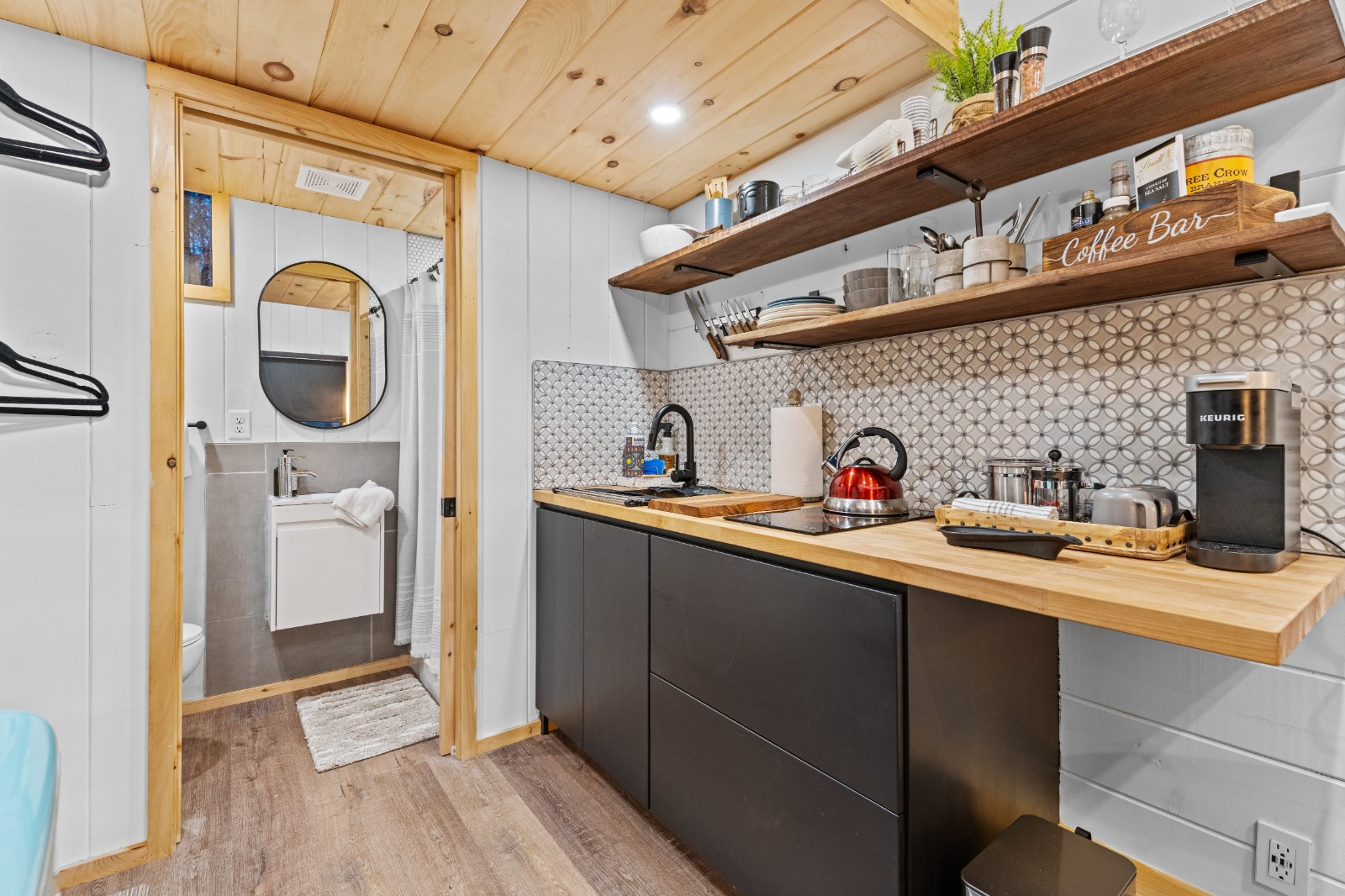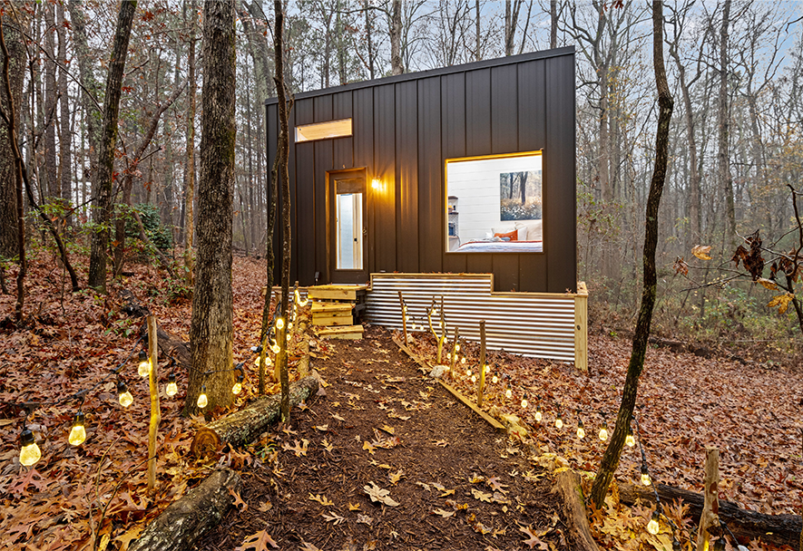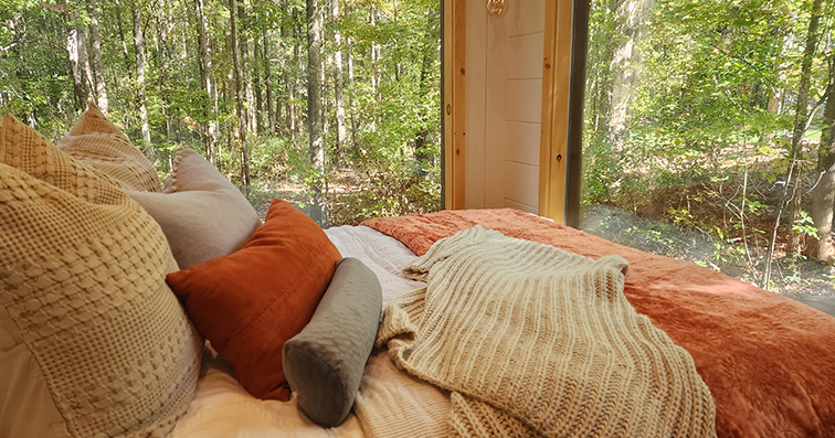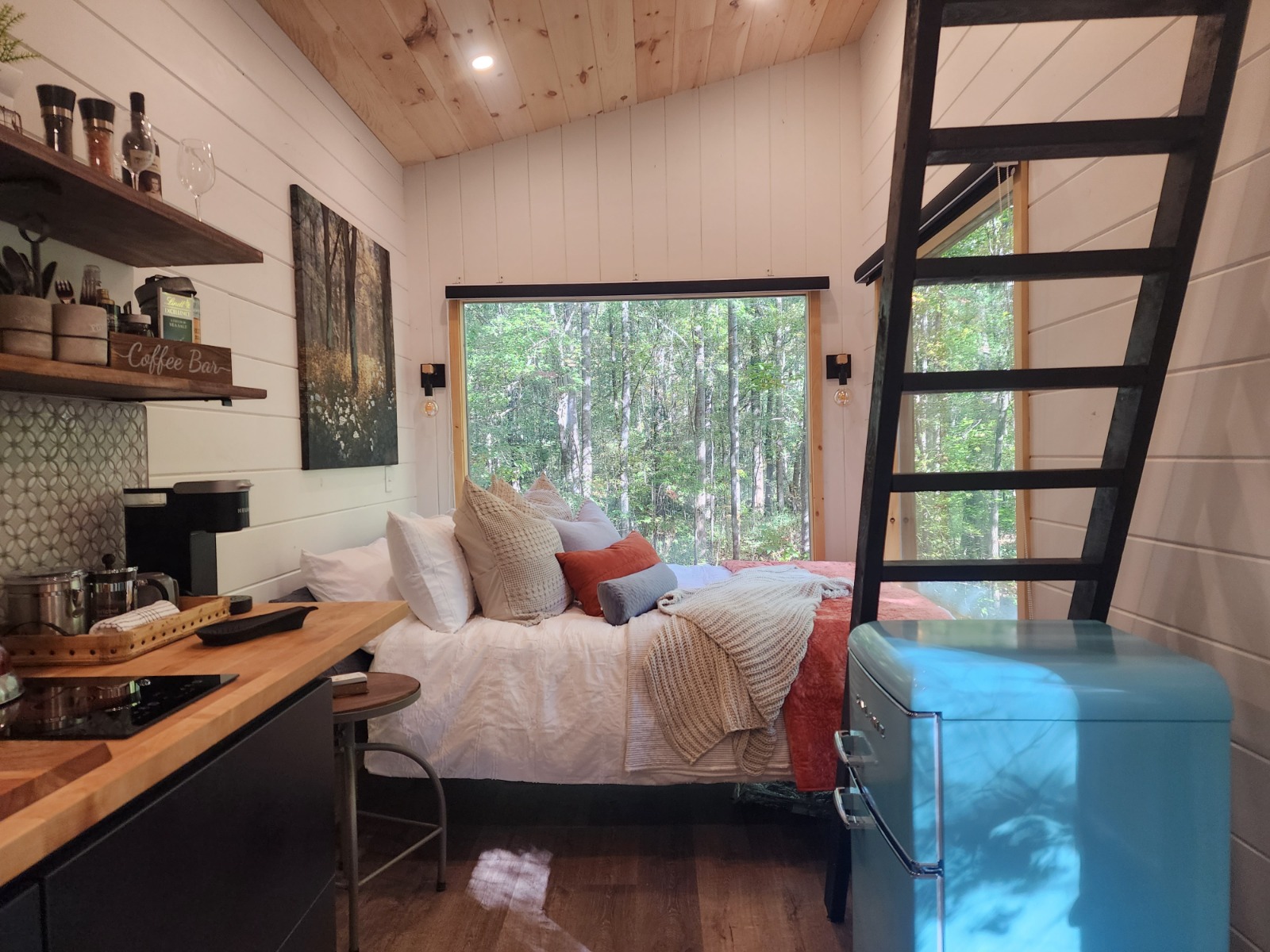 Each of our thoughtfully designed cabins provides the perfect sanctuary for the modern traveler. Enjoy the convenience of cozy kitchenettes, well-appointed bathrooms—some featuring indulgent soaking tubs or private outdoor showers—and drift into restful sleep on plush beds with premium mattresses, soft linens, and warm duvets. Expansive picture windows showcase breathtaking views of the forest, immersing you in nature both day and night.